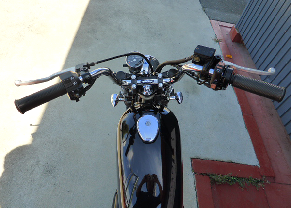 少し高めなハンドルをチョイスし、大柄な雰囲気もあり、少し幅狭なのですり抜けも得意。ノーマルからガラッとイメージも変わり、250TRロゴもあえて外しました!